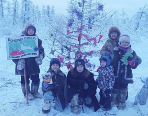Учащиеся кочевой школы "Кёнэлэкэн" МБОУ "Харыялахская СОШ им.Х.А. Христофорова" Оленекского ЭНР.