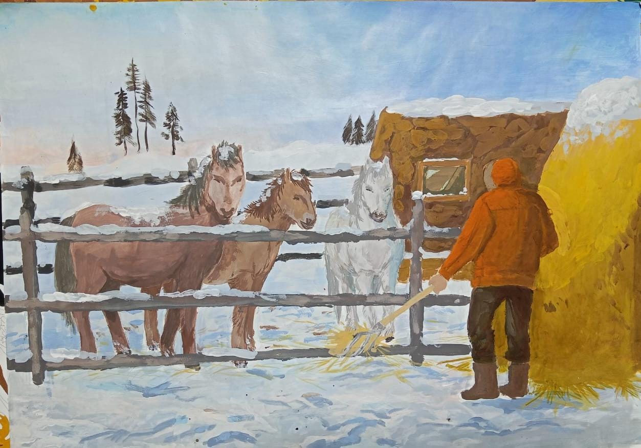 Зимние заботы начинаются с морозного утра. Милые якутские лошадки на холодные дни кормятся у нас во дворе.