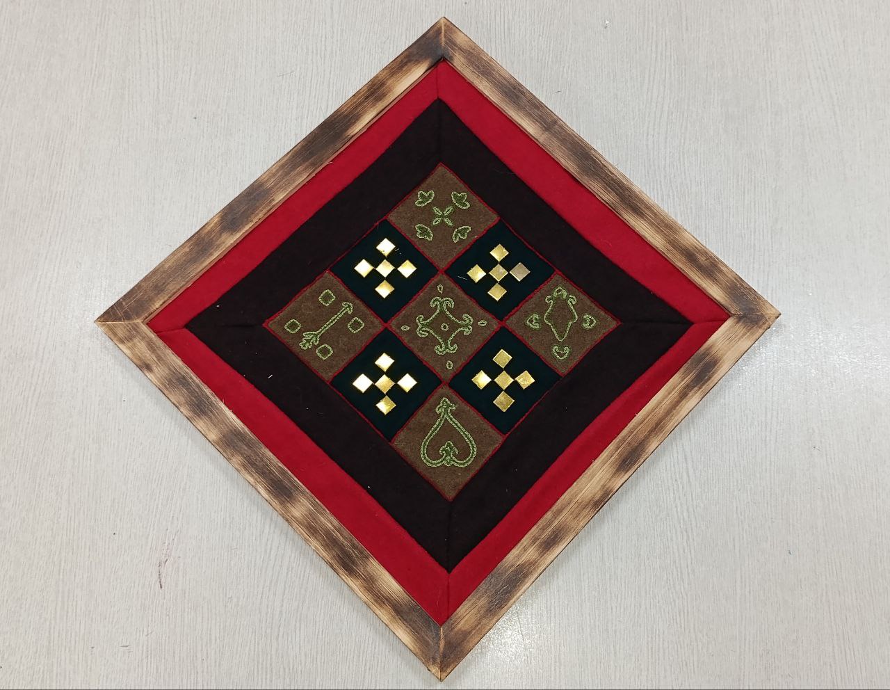 Панно "Биэс харах" сшита из сукна в технике лоскутного шитья "Кыбытык", вышита из ниток мулине стебельчатым швом.