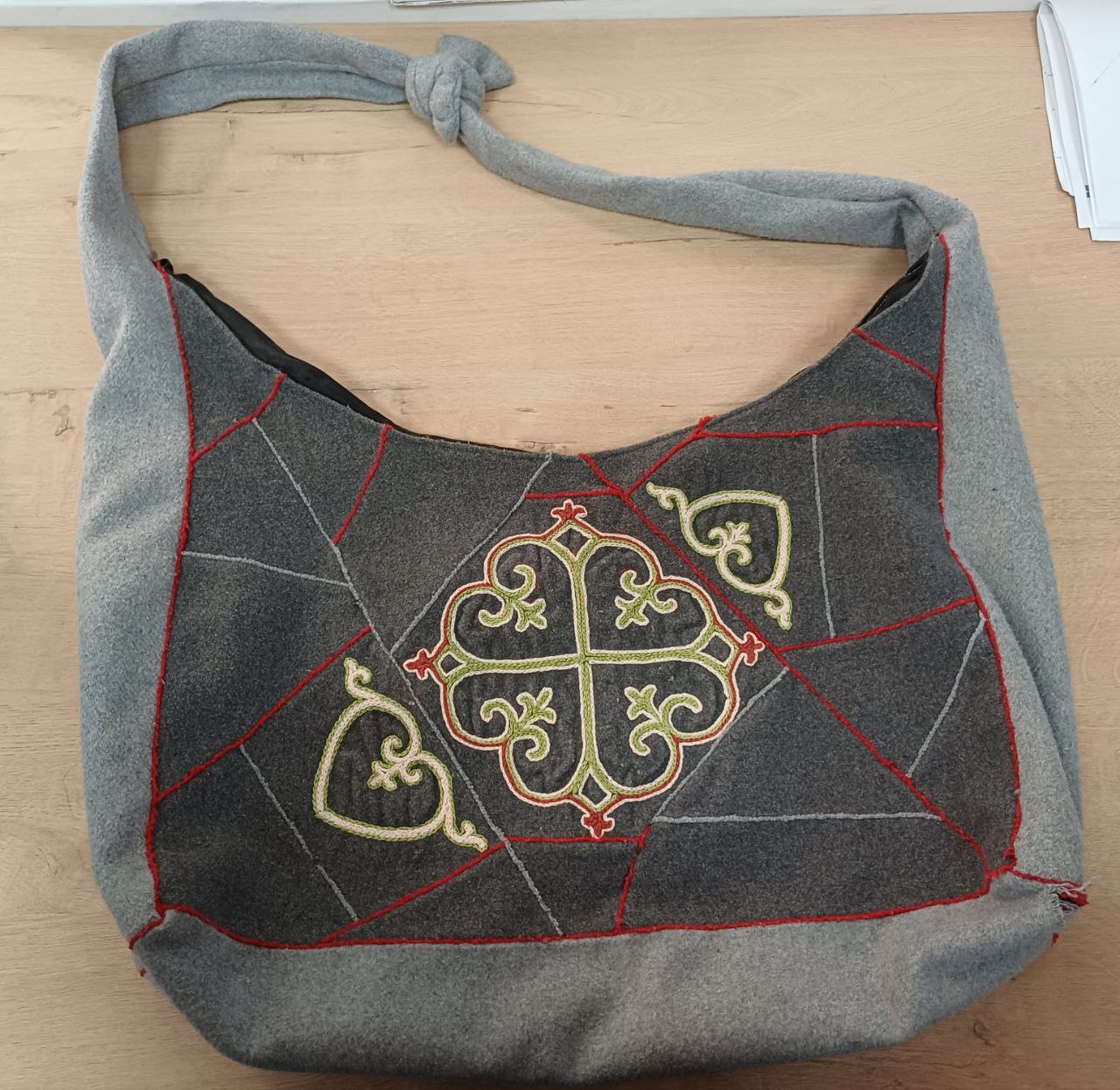 Плечевая сумка "Оһуор" в технике лоскутного шитья "Кыбытык", вышиты якутские орнаменты из ниток мулине стебельчатым швом