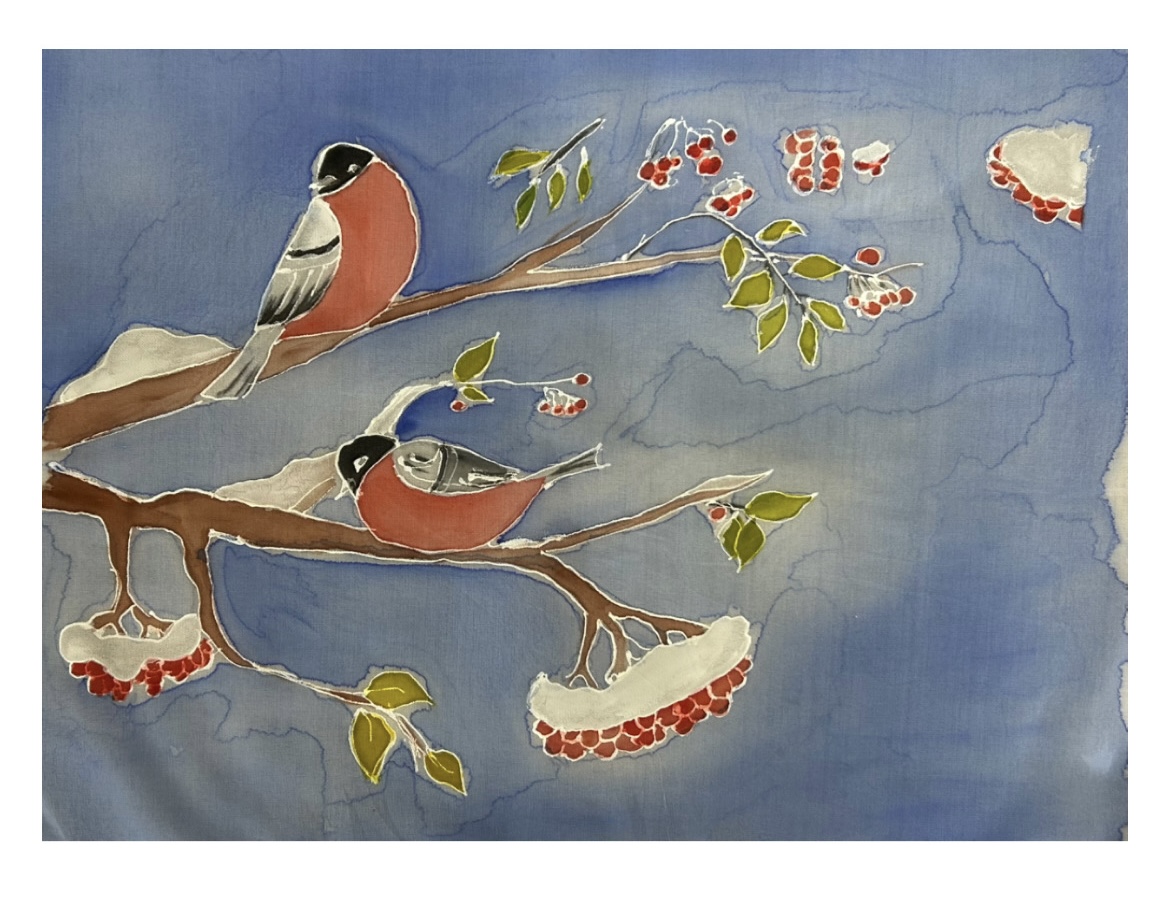 Сайаане 13 лет, ее любимое занятие из декоративно-прикладного искусства - батик, размер работы 40х50