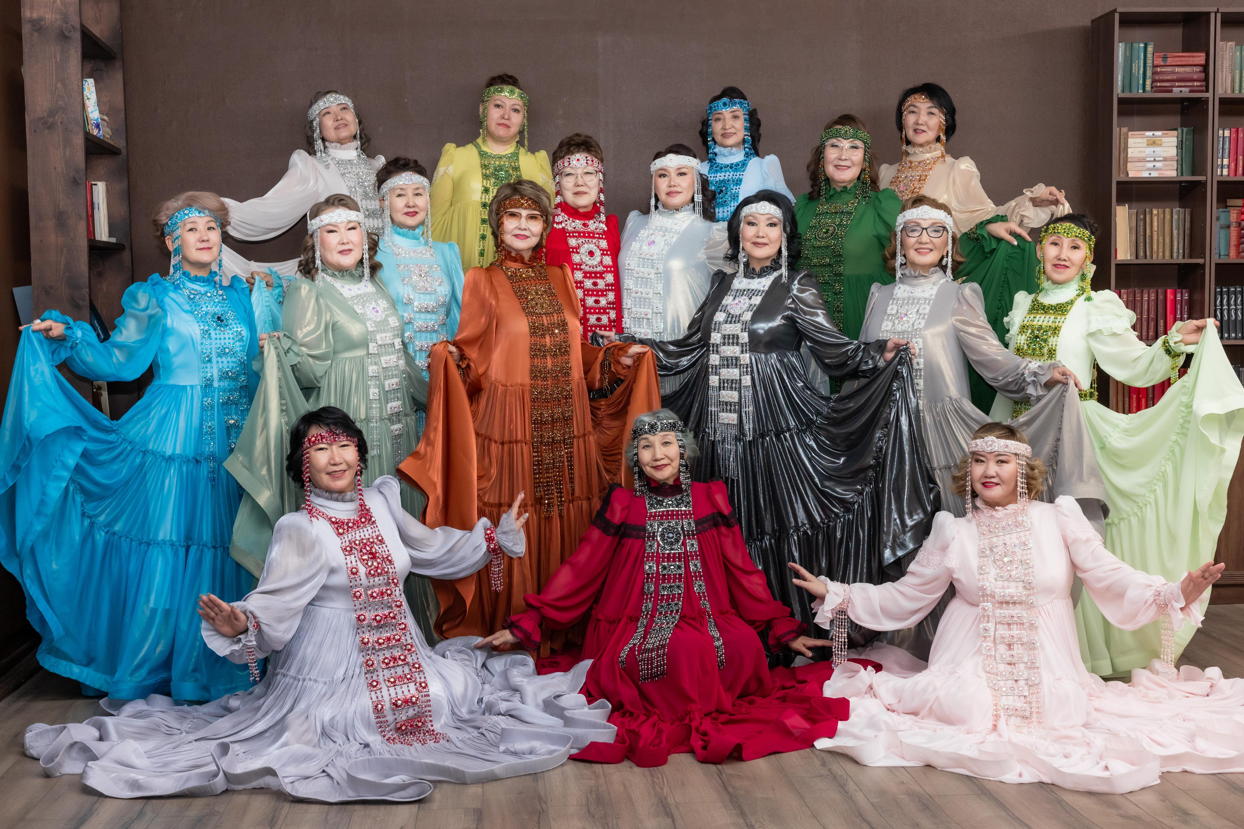 женский клуб "Кыталыына" представляет коллекцию "Сайын"-это коллекция стилизованных якутских национальных платьев-халадаай, из тончайшего шифона, сшитые по эскизам руководителя клуба Татьяны Кондратьевой, дополнены нагрудно-наспинными украшениями, головными уборами "Бастына", съёмными манжетами с висюльками, серёжками и кольцами. Все украшения выполнены руками мастериц женского клуба "Кыталыына", по авторской методике руководителя клуба- Татьяны Кондратьевой. И сегодня каждая мастерица представляет перед вами свою работу.