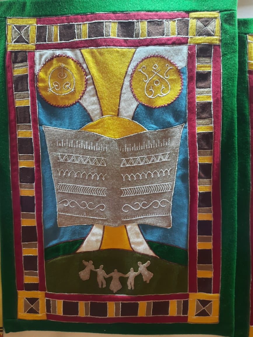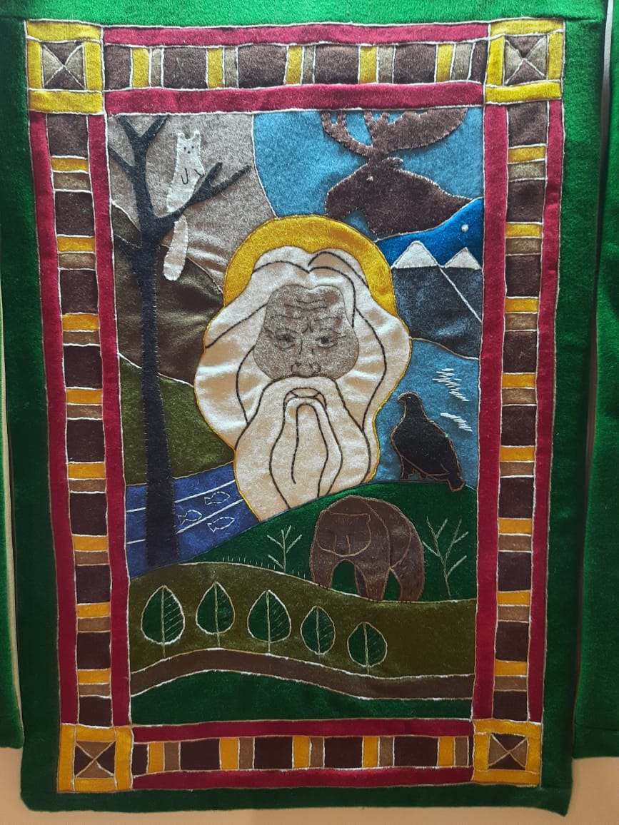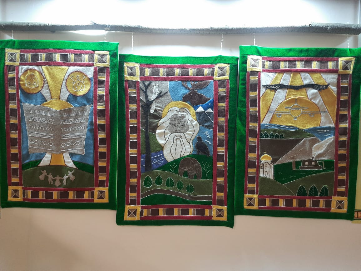 2. Панно по произведению “Байанай алгыһа” – “Благословение Байаная” выполнила Попова Эльвира Васильевна. Это первое прозведение якутской литературы.