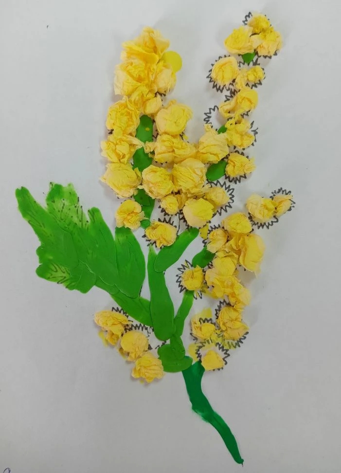 Жукова Алиса Никитична Смидовичский район, МБДОУ "Детский сад с. Ключевое" Название работы Веточка мимозы Возрастная категория: 1 группа «Младшая» – 4-7 лет Руководитель: Палышева Ольга Александровна Номинация участия: Изобразительное искусство